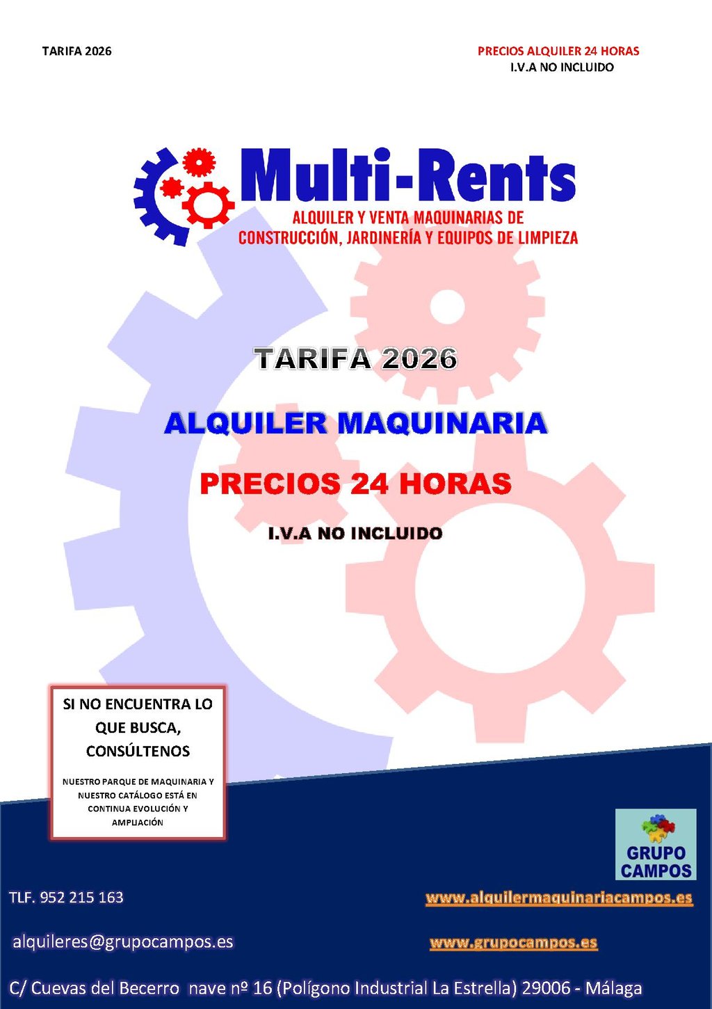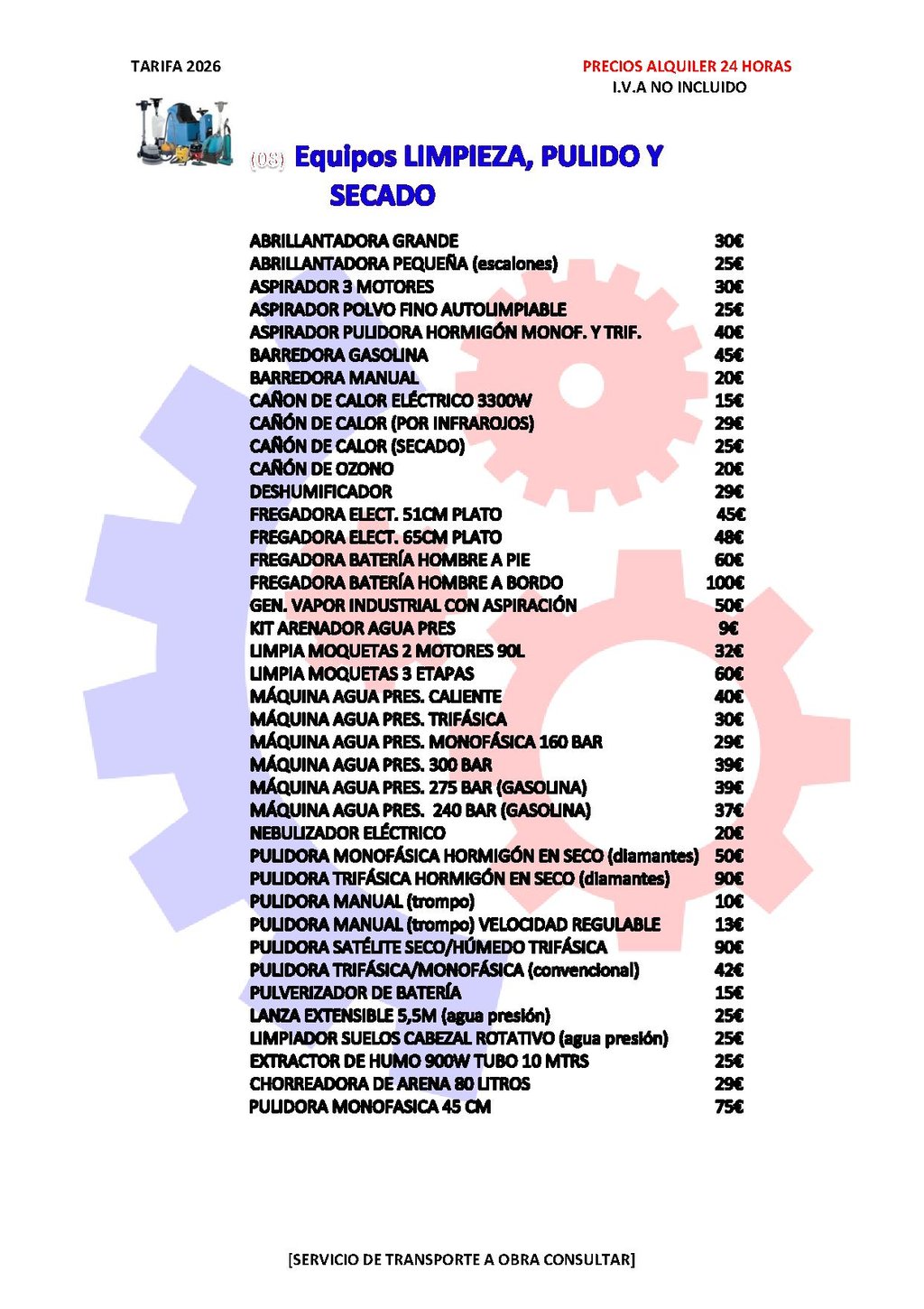 Alquiler de maquinaria y servicios de limpieza en Málaga